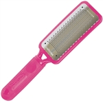 - With rubber handle removed from body of Foot File, flush front of metal file surface with running water for 10 seconds. Slowly move the file surface front end to end underneath the running water and tilt from side to side to allow skin particles to fall away.