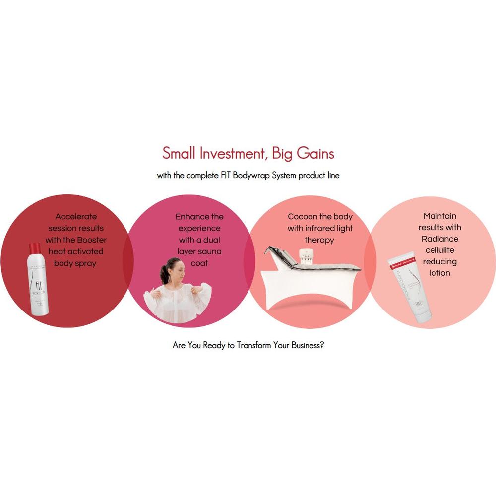 The Fit Avant system is not just a body wrap service; its a business growth tool. By adding this state-of-the-art system to your offerings, you differentiate yourself from competitors and increase your revenue potential. Whether you're in a high-end spa or a busy salon, the Fit Avant systems premium quality and cutting-edge design will attract clients who are looking for the best in body contouring treatments.