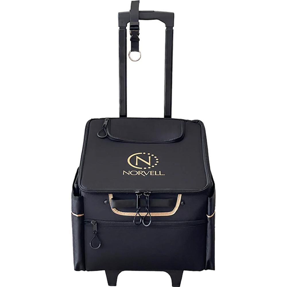 Norvell Pro Travel Bag - Black with Gold. Every spray tan artist knows that time is of the essence, especially when on the go. The Norvell Pro Travel Bag is designed for professionals who need to maintain efficiency, organization, and style while traveling for their work. This bag ensures your equipment stays protected, organized, and easily accessible, whether you're traveling between client appointments or heading to a mobile tanning event. With its durable, professional design and multiple compartments, the Norvell Pro Travel Bag brings unparalleled ease to your busy lifestyle.