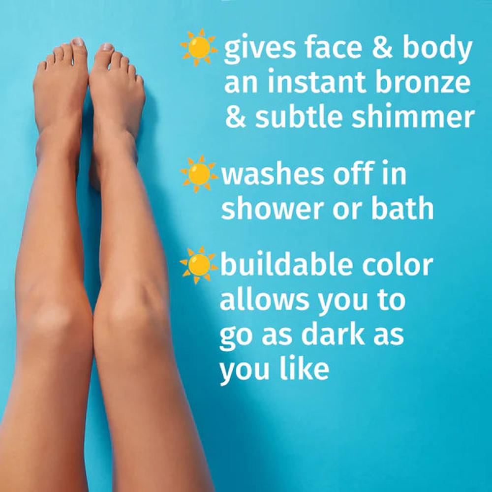 - Instant Glow: Provides a quick, natural-looking bronze with a touch of shimmer for an effortless glow.