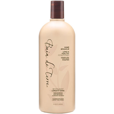 Bain De Terre Sweet Almond Oil Long & Healthy Conditioner / 1 Liter. Richly condition & fortify to help hair grow long & twice as strong* while reducing frayed ends.