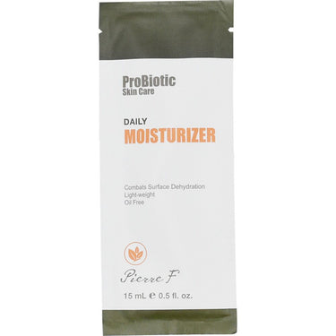 Pierre F ProBiotic Daily Moisturizer / 0.5 fl. oz. - 15 mL. Scientifically formulated with Probiotics, lemon, and cucumber to provide daily moisture protection. This gentle formula penetrates the outer layers of skin to assure that skin will stay soft and moist all day long.