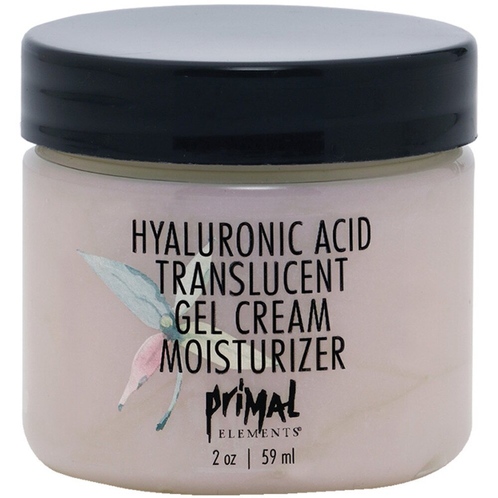Primal Elements Hyaluronic Acid Gel Cream Moisturizer / 2 oz. - 59 mL. Hyaluronic Acid is all the rage! Primal Elements Hyaluronic Acid Translucent Gel Cream Moisturizer has a unique texture that penetrates to hydrate and moisturize thirsty skin; reducing the appearance of fine lines and wrinkles. Hyaluronic acid is naturally occurring in the body so there is no irritation. This formula is suitable for both day and night time use for a soft, dewy appearance. This small package packs a mighty punch!