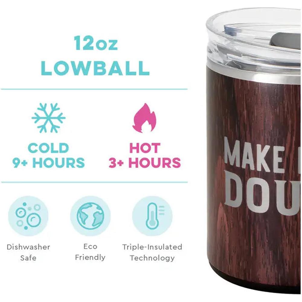 Swig Life 12 oz. Lowball Tumbler - Make Mine A Double. Elevate every sip with the Swig Life 12 oz. Lowball Tumbler – your new go-to for keeping drinks at the perfect temperature. Whether you’re crafting a perfectly chilled cocktail or enjoying a hot cup of coffee, this tumbler is built to impress. Designed with both functionality and style in mind, it features a durable woodgrain exterior that offers a unique, rustic aesthetic while delivering reliable temperature control. Perfect for busy spa or salon professionals who need a drink that stays as fresh as their work, the Swig Life Lowball Tumbler is more than just a tumbler; it's a game-changer.