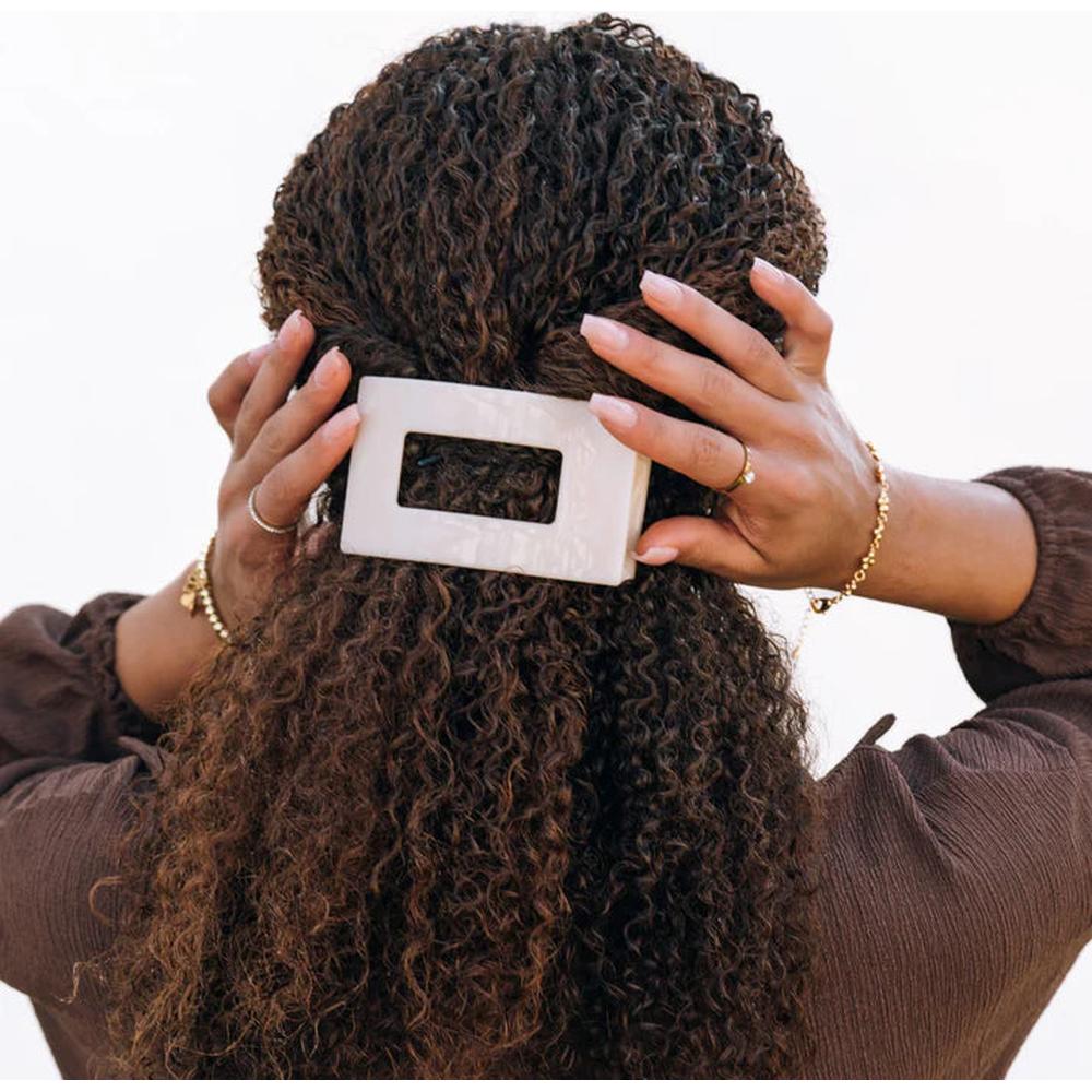 With its rectangular shape, the Teleties Almond Beige Medium Flat Rectangle Hair Clip takes your hair styling to new heights. This elegant design not only adds an elevated, on-trend touch to your look but is also built to provide a strong, flexible hold. The flat-back feature ensures comfort when lounging, traveling, or attending a yoga session – it’s the ideal accessory for any occasion.