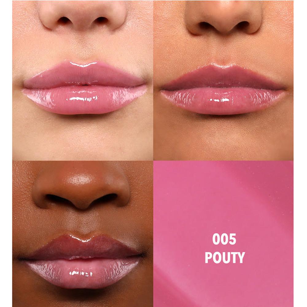 Shade: Pouty (rosy pink, non-glitter, high-shine).