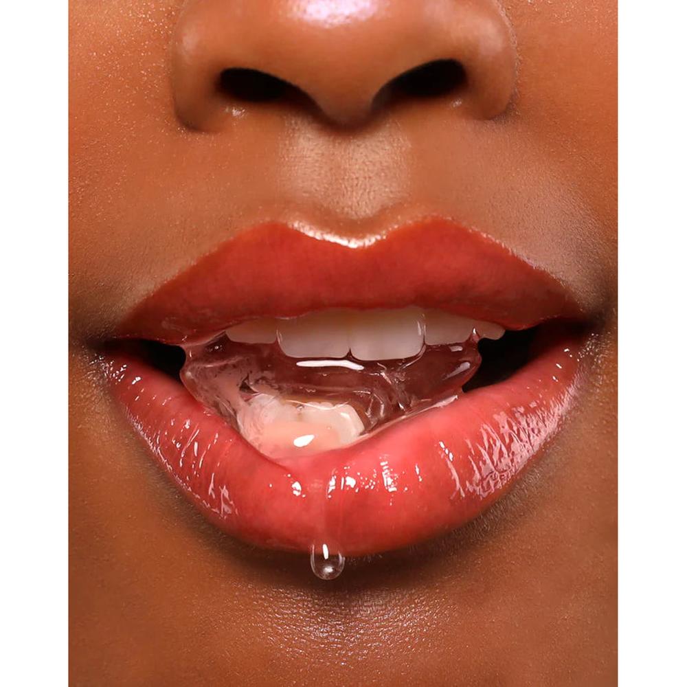 The doe-foot applicator lays down the perfect amount of product for speedy touch-ups. One coat gives shine and tint; a second coat amplifies the wet-look finish for editorial gloss. It layers over any lip color without breaking down lipstick underneath, and it never leaves strings or stickiness when lips press together.