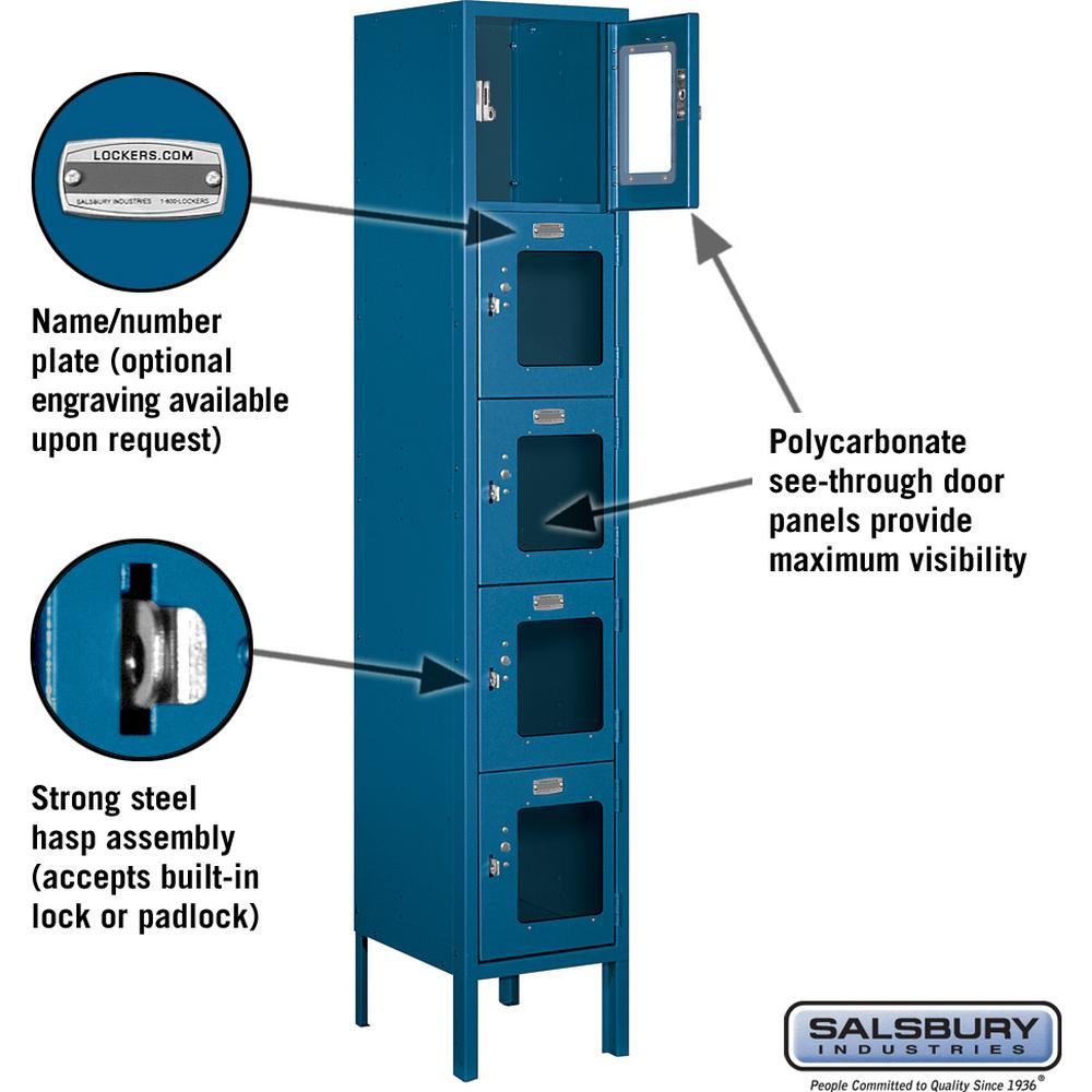 12" Wide Five Tier Box Style See-Through Metal Locker - 1 Wide - 5 Feet High - 12" Deep by Salsbury