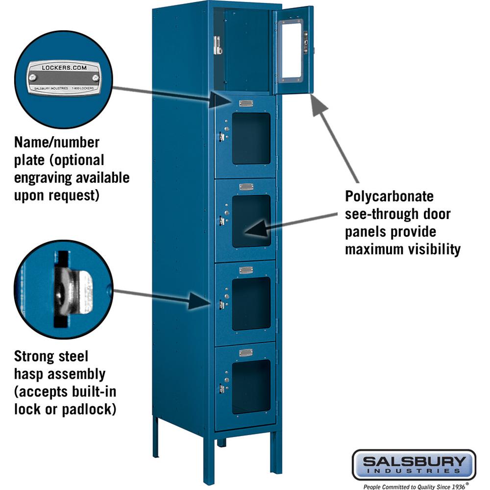 12" Wide Five Tier Box Style See-Through Metal Locker - 1 Wide - 5 Feet High - 15" Deep by Salsbury