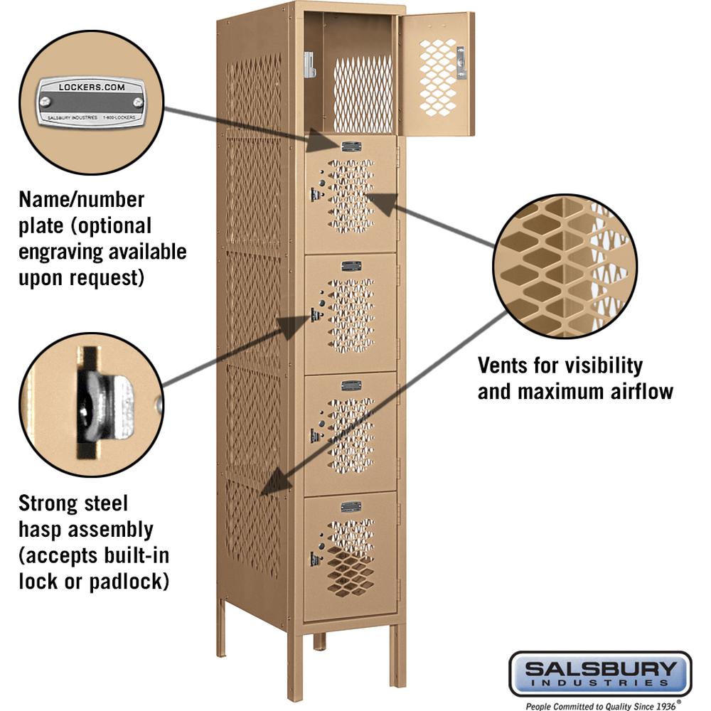 12" Wide Five Tier Box Style Vented Metal Locker - 1 Wide - 5 Feet High - 18" Deep by Salsbury