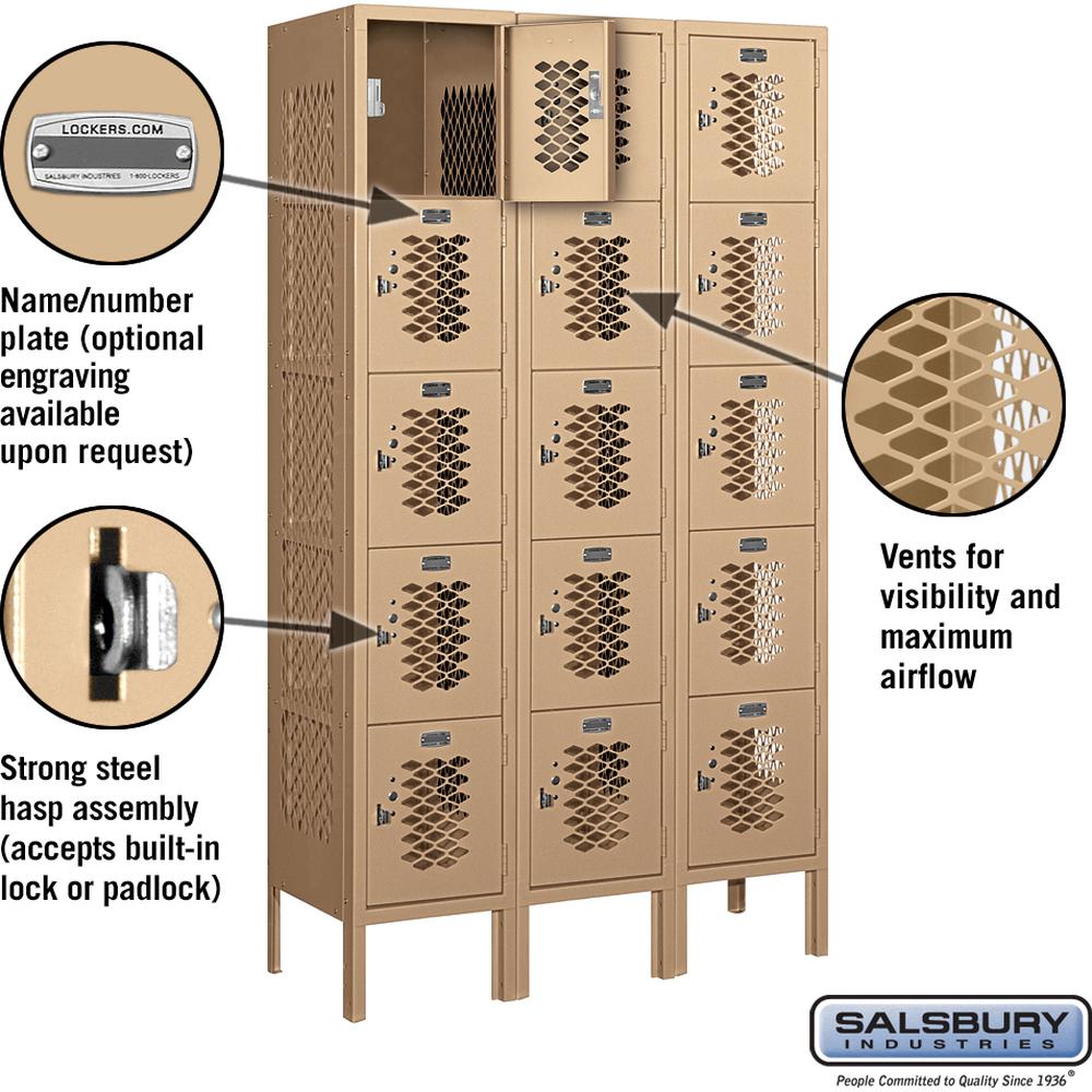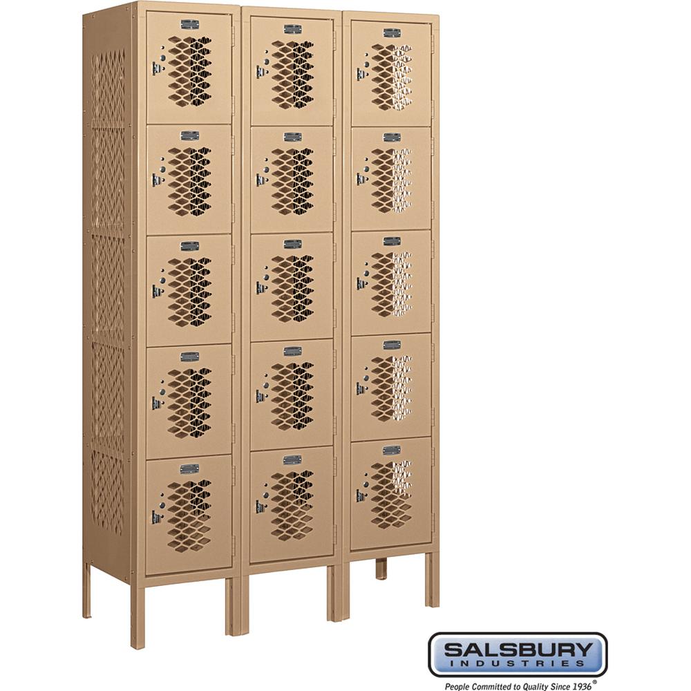 12" Wide Five Tier Box Style Vented Metal Locker - 3 Wide - 5 Feet High - 12" Deep by Salsbury