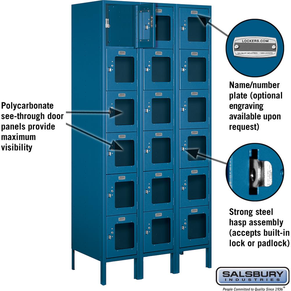 12" Wide Six Tier Box Style See-Through Metal Locker - 3 Wide - 6 Feet High - 18" Deep by Salsbury