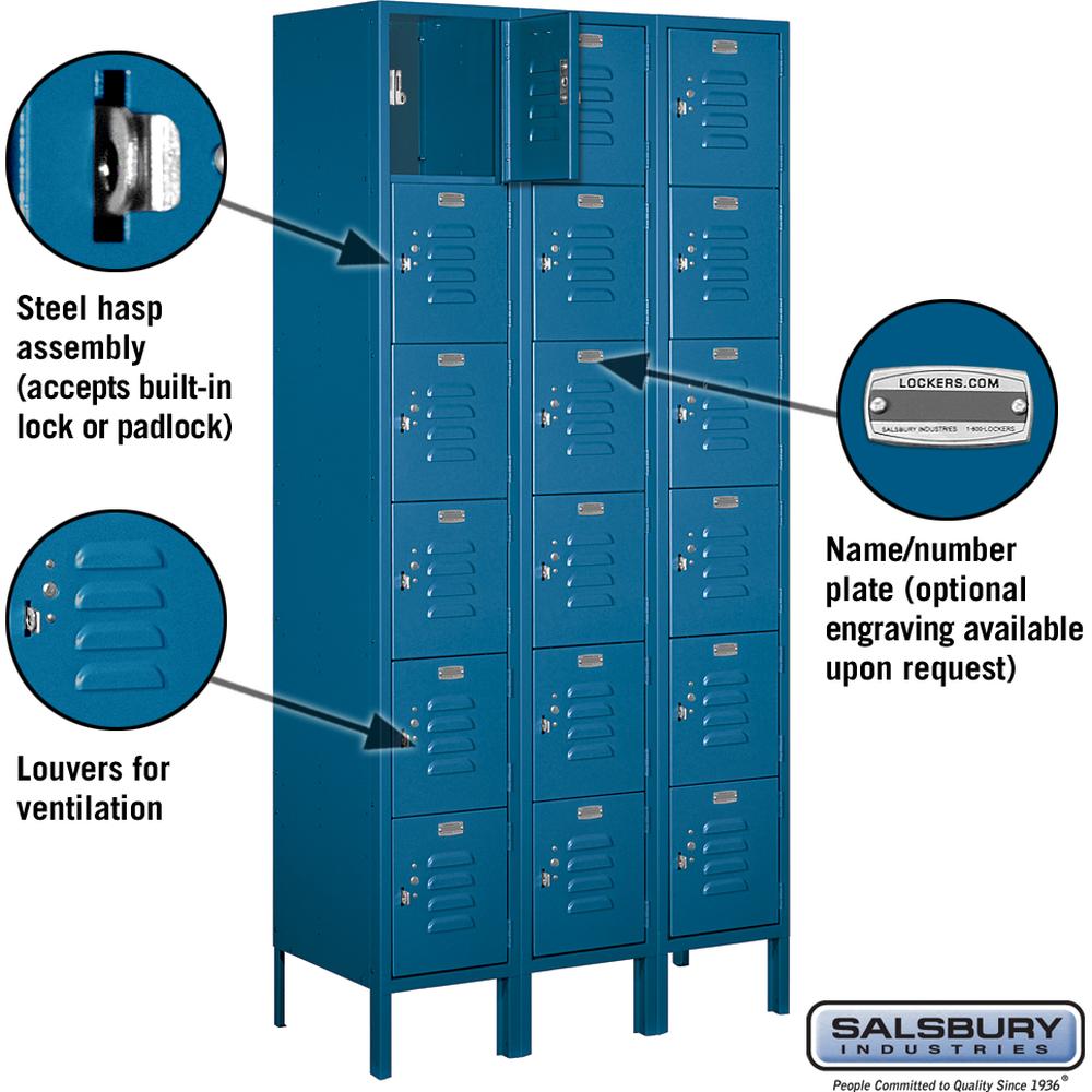 12" Wide Six Tier Box Style Standard Metal Locker - 3 Wide - 6 Feet High - 15" Deep by Salsbury