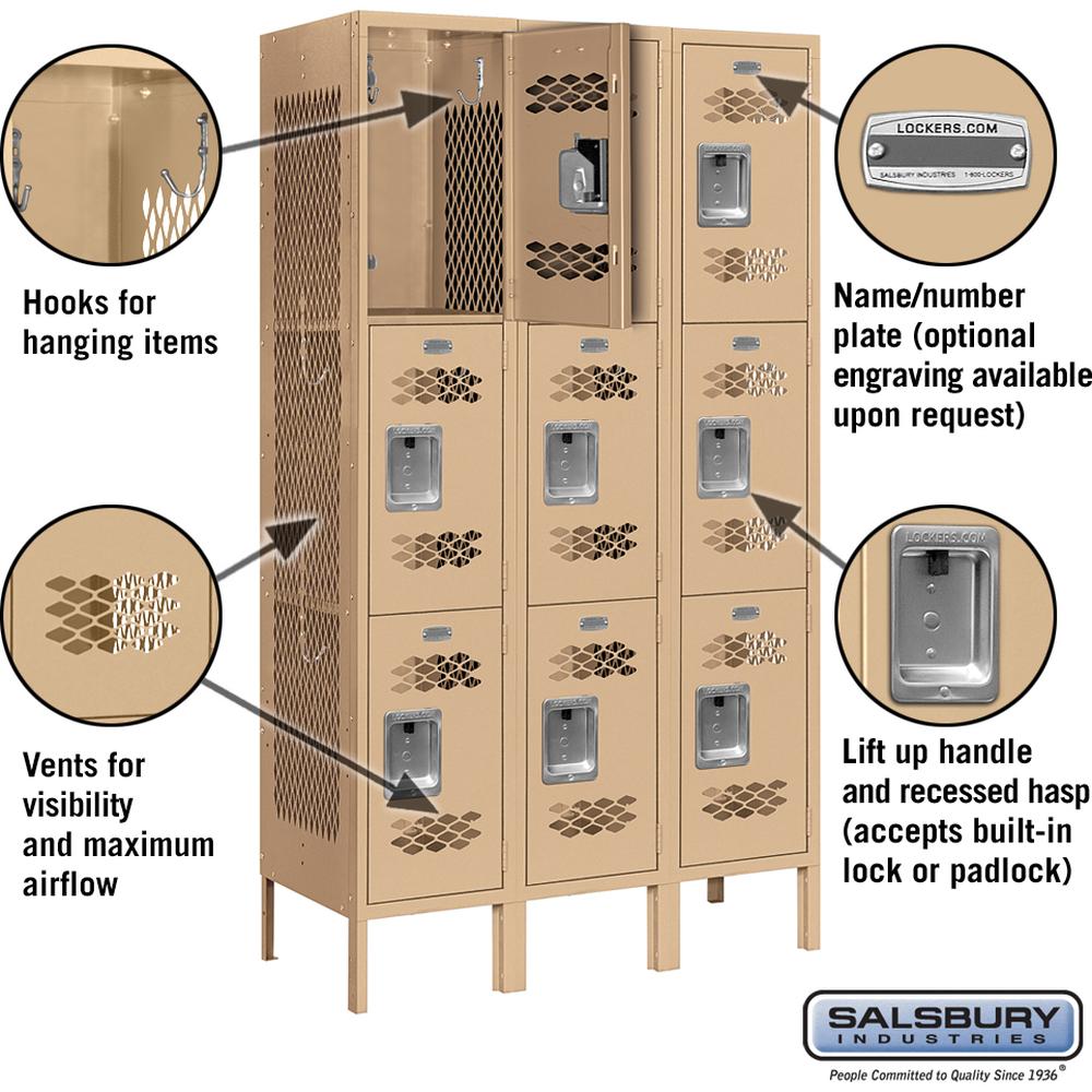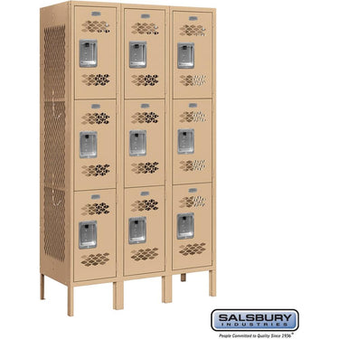 12" Wide Triple Tier Vented Metal Locker - 3 Wide - 5 Feet High - 15" Deep by Salsbury