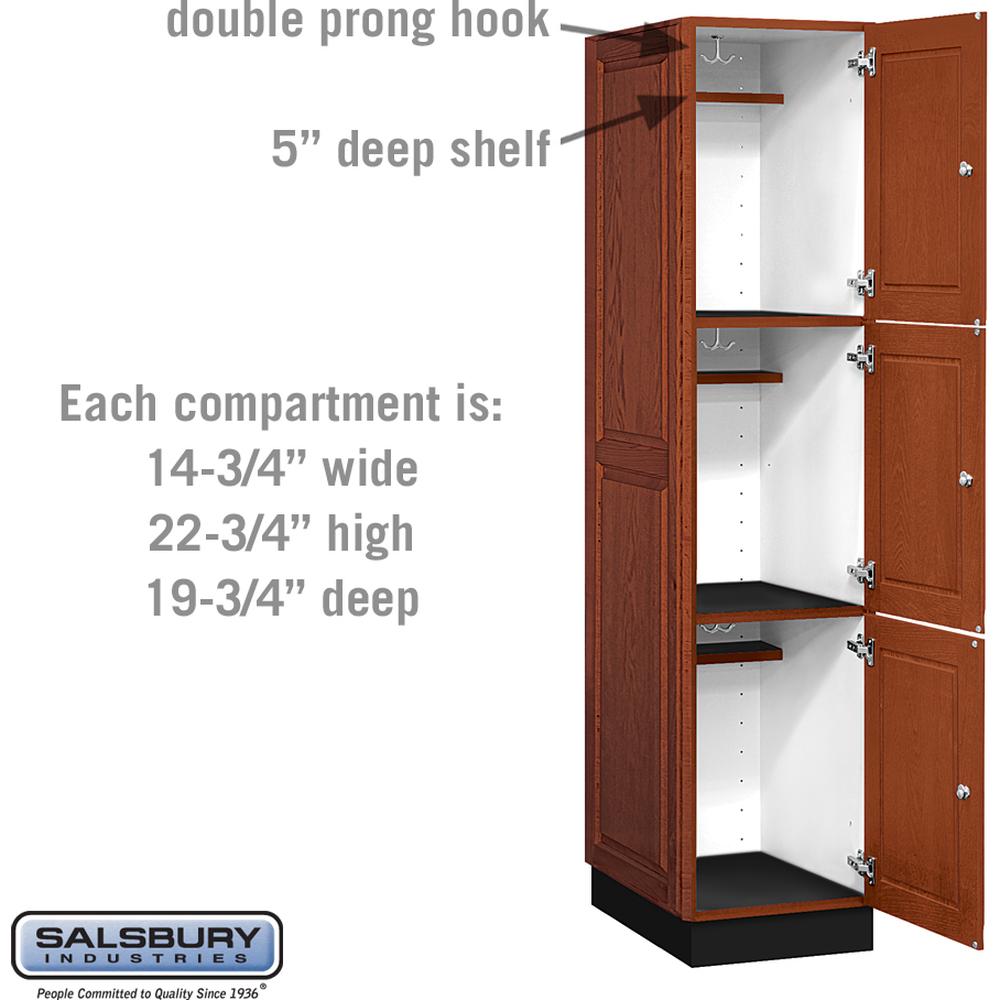 16" Wide Triple Tier Solid Oak Executive Wood Locker - 1 Wide - 6 Feet High - 21" Deep - Medium Oak by Salsbury