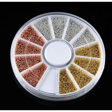 The 1mm Nail Art Mini Beads - Gold, Silver & Rose Color - Pack. 1mm Mini Beads come in 3 colors: Gold, Silver, and Rose to customize for any client is taste.