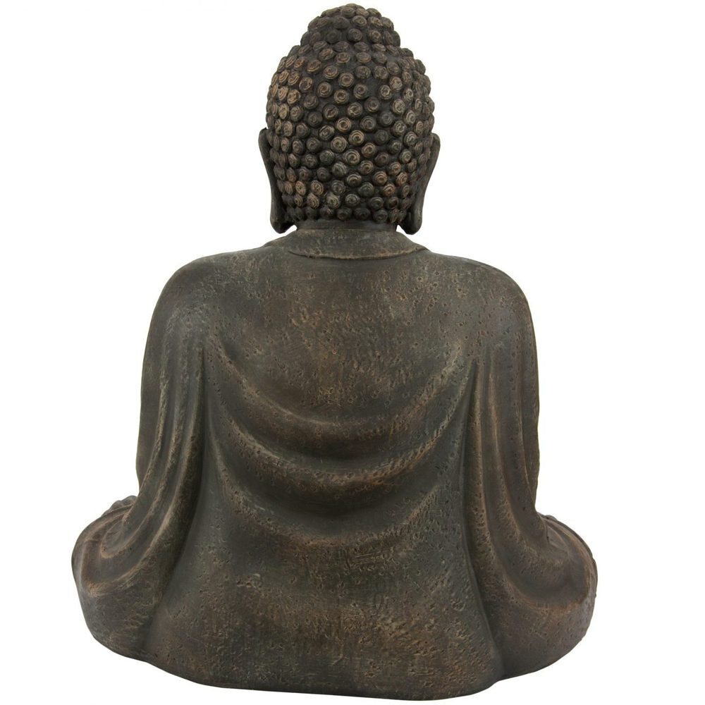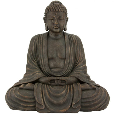 The 2 ½ ft. Tall Japanese Sitting Buddha Statue. A breathtaking reproduction in high-quality resin of an authentic Japanese statue, the Buddha sits contentedly in peaceful meditation. His hands are folded in a style unique to Japan and associated with Amida, the Buddha of Infinite Light. Featuring a substantial size--well over two feet tall!--and a beautiful faux patina finish with an authentic stone appearance, this Buddha is a delight to be hold and is perfect for a home, yoga studio, restaurant, or garden.