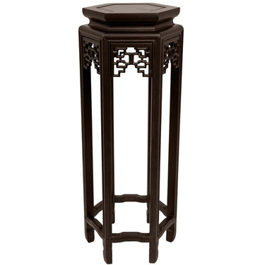 The 28" Rosewood Hexagon Plant Stand. A classic six sided Chinese decorative plant stand, sturdily crafted from fine, kiln dried solid Rosewood. It's great for displaying house plants, vases, porcelain jars, carvings, castings, statues, or figurines.