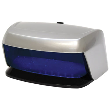 The 3 Watt LED Lamp With Timer. This economical, 3 Watt LED lamp cures nails, one hand at a time. Great for gel polish and top coats. lights, 30 second timer 4-1/2" ft. cord, and an AC adapter. Lamp can also be powered by 4 AA batteries (not included). Measures 2-3/4"H x 6"W x 4-1/4"D.
