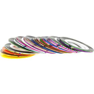 The 30 Colors Nail Adhesive Striping Tape Rolls - 1mm - Pack of 30 Pieces. 30 Colors Nail Adhesive Striping Tape Rolls - 1mm - Pack of 30 Pieces. Great Value! A pack of 30 pieces to let your creativity run wild!