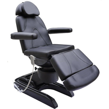 The 4 Motor Multi-Use Electric Bed. This incredible 4 motor bed combines good looks and functionality! This is a dual purpose bed - massage as well as facial. It allows a client to sit upright with legs in a normal seated position - perfect for a medical office offering injectibles! This versatile bed also rotates 270 degrees, so you can position your client in the perfect position for any service! Lays flat for massage, sits upright, or any position in between! Features manually adjustable / removable armrests, adding to the versatility of this incredible bed!