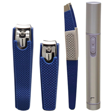 The 4 Piece Men's Grooming Set. Includes 4 grooming essentials in a convenient storage pouch.
