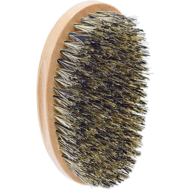 The 5-1/4" Curved Oval Palm Brush - 100% Natural Boar Bristles + Nylon Bristles / 11 Rows. 5-1/4" curved oval palm brush with a mixture of high-quality, 100% natural boar bristles and reinforced nylon bristles. Natural wood with a high-gloss finish. Curved shape contours easily to the head. 11 Row.