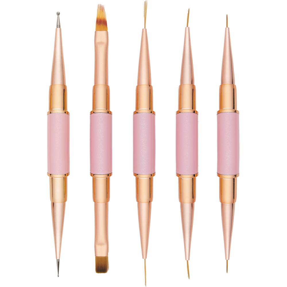 The Double-Sided Nail Art Tool Set includes five unique tools, each double-ended to maximize efficiency and versatility. This carefully selected range of brushes and dotting tools will help you achieve everything from precise dots to stunning ombre effects. The set includes: