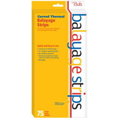 The 5" x 12" Thermal Balayage Strips / 75 Count. Unique polystyrene material adheres with just one fold, making application and removal much quicker. Non-slip texture keeps product in place and helps control bleeding. Thermal properties retain heat to speed up processing. 25% lighter than most foils. 75 per box. Measures: 5" x 12".