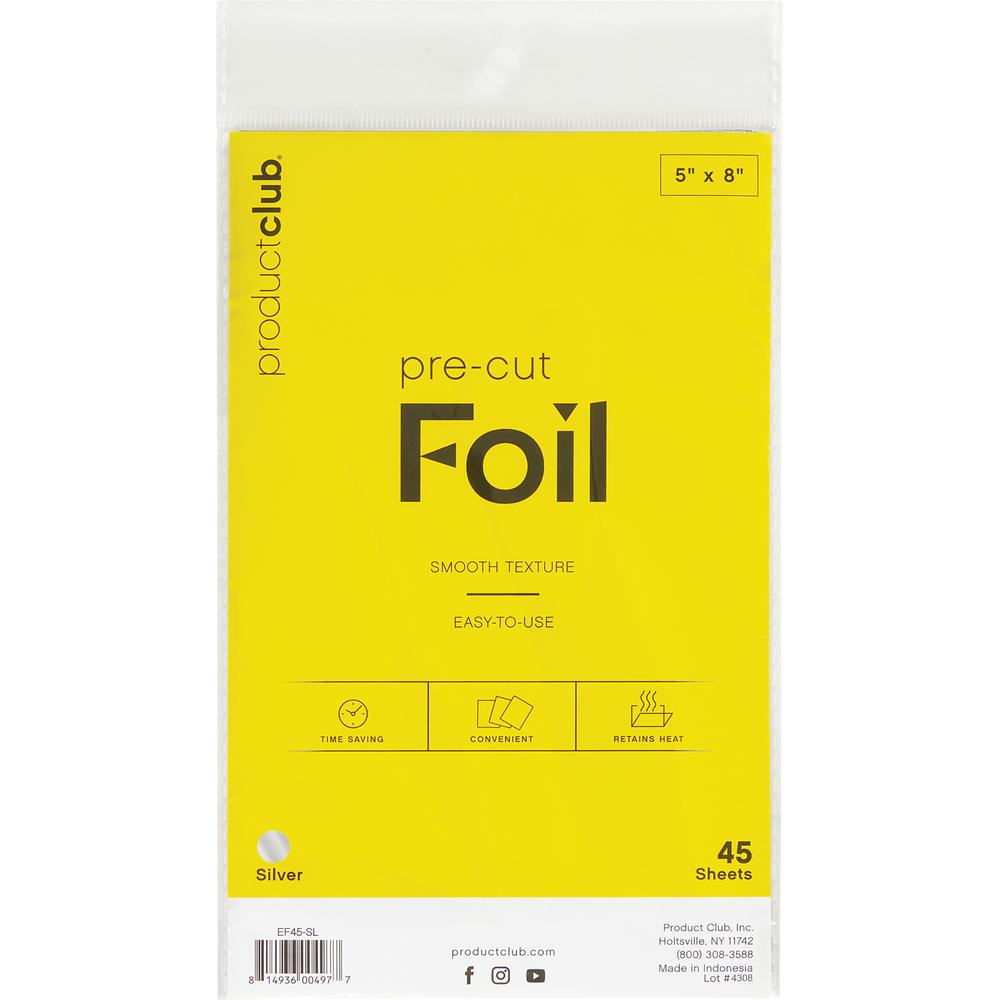 5" x 8" Pre-Cut Foil 45 Pack. The 5" x 8" Pre-Cut Foil is the ultimate tool for professionals who demand both efficiency and precision in their hair coloring services. These high-quality foil sheets are smooth, sturdy, and designed to withstand heavy lighteners, making them ideal for highlighting, coloring, and other foil-based techniques. With 45 sheets per pack, each measuring the perfect 5" x 8" size, they're well-suited for short to medium-length hair, allowing your clients to enjoy flawless results every time.