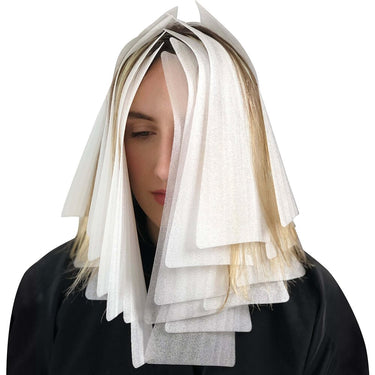 The 6" x 12" Contoured Meche Strips / 100 Count. Lightweight foil alternative that is perfect for balayage and color blocking. See-through material makes it easy to monitor processing. Contoured sheets conform to head shape. Washable and reusable. 100 per box. Measures: 6" x 12".
