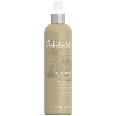 Abba Firm Finish Hair Spray (Non Aerosol) / 8 oz. Abba Firm Finish Spray (non-aerosol) uses Grapefruit and Avocado Oil to create a finish to your style with a firm, durable hold for all hair types. Great for creating a wet look.
