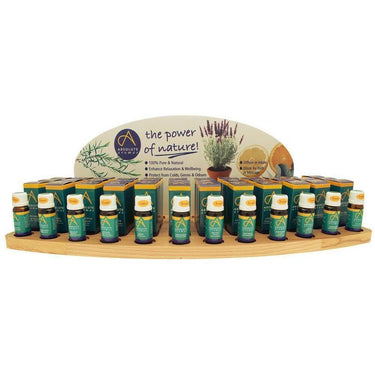 Absolute Aromas - Pure & Natural Intro Essential Oils Display Package. Offer your clients an aromatic experience with the Absolute Aromas Pure & Natural Essential Oils Display Intro Package. This attractive wooden display features an eye-catching informative header, and is designed to display 12 facings of essential oils and a tester for each.