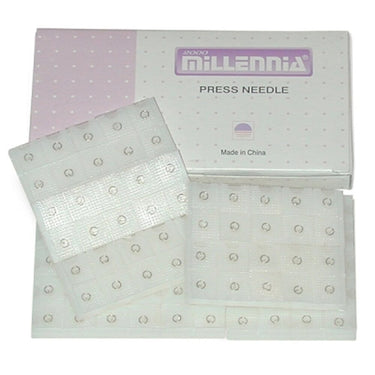 Acupuncture Needles Press 100/Box .20mmx1.5mm. Press Needle Double-taped 0.20mm diameter x mm/2.0mm long with 2mm base loop on plastic board. 100 pieces per box.
