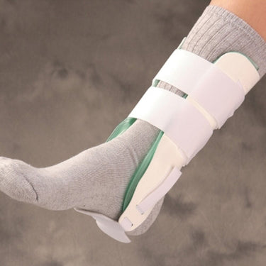 Support and stabilization. Features rigid, contoured outer shells and air-adjustable bladders. Resists inversion better than taping. Medical-grade, perforated-brushed tricot filler allows airflow to help reduce swelling and edema. Ideal for athletic performance. Best when worn with absorbent sock and laced shoes. Universal sizing, 9" (24cm) tall.