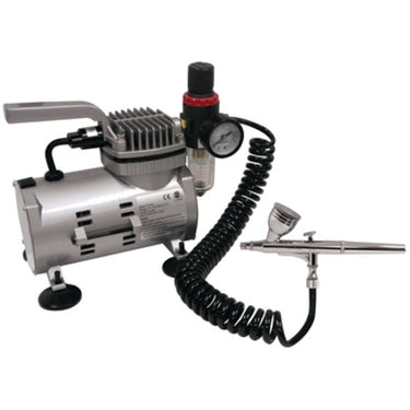 Airbrush System. Multi-purpose airbrush system is ideal for creating designs for anil and body art. Includes the following: Air compressor, Air filter, Airbrush with accessories (nozzle wrench, eye drop, and ink cup lid) and an airbrush storage case.