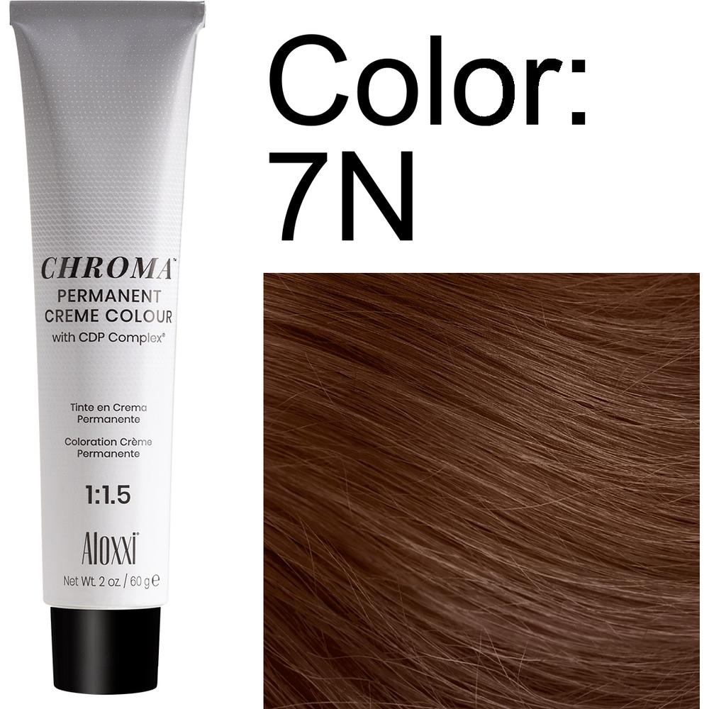 Aloxxi Chroma Permanent Creme Colour 7N Salon-Grade Vibrancy and Protection. Deliver the ultimate hair color experience with Aloxxi Chroma Permanent Creme Colour 7N. Designed for professional salon environments, this crme colour system doesnt just add depth and vibrancyit elevates every coloring session into an indulgent, results-driven service. Infused with high-performance conditioning agents and crystal-clear micro-pigment technology, it ensures rich, even results while safeguarding the hair and scalp with every application.