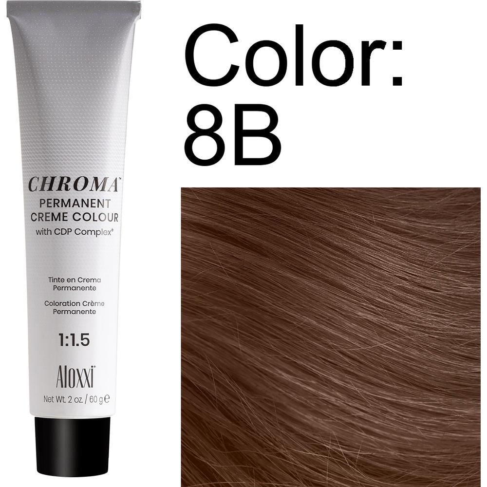 Aloxxi Chroma 8B: Brilliant Brunette Hair Color Cream. Vibrancy, depth, and long-lasting coverage come to life with Aloxxi Chroma Permanent Creme Colour in shade 8B. Created for salon professionals who demand both performance and creativity, this permanent hair color unlocks consistent results with exceptional conditioning benefits, providing a superior color experience for clients. Every application is an opportunity to elevate service quality while optimizing salon efficiency.