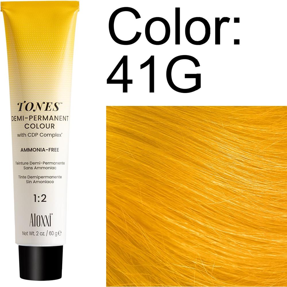Aloxxi Tones Demi-Permanent Colour - 41G / 2 oz. Aloxxi Tones Demi-Permanent Colour offers a superior, ammonia-free solution that delivers vibrant, long-lasting color while nourishing and protecting your client's hair. With its advanced CDP Complex, this innovative color formulation ensures exceptional coverage, shine, and moisture retention throughout the coloring process. The rich blend of ingredients provides a smooth, weightless texture, making it an ideal choice for your salon services, offering superior color deposition with no lift required.
