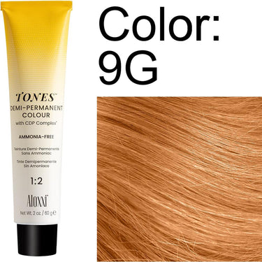 Aloxxi Tones Demi-Permanent Colour - 9G / 2 oz. Embark on a voyage of elegance and exceptional design with Aloxxi Tones Demi-Permanent Colour. Specially crafted for beauty professionals who demand both effectiveness and reliability, this ammonia-free formula provides flawless color that maintains the health and vibrancy of your client's hair. Ideal for salons looking to enhance their client's experience, Aloxxi Tones offers superior color deposit, moisture, and protection, making it the go-to choice for a wide range of color services.