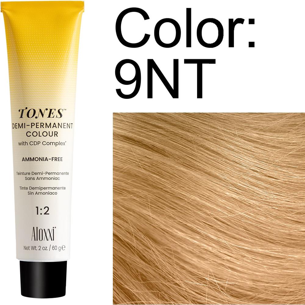 Aloxxi Tones Demi-Permanent Colour - 9NT / 2 oz. Achieving stunning, vibrant color that lasts without compromising the health of your client's hair is a challenge every professional stylist faces. With Aloxxi Tones Demi-Permanent Colour, that challenge becomes a thing of the past. Formulated to deliver flawless color while caring for the hair, this ammonia-free, demi-permanent color provides complete coverage and a long-lasting shine. Designed for the discerning professional, Aloxxi Tones Demi-Permanent Colour is an essential addition to your salon's color collection, offering your clients an unforgettable experience.