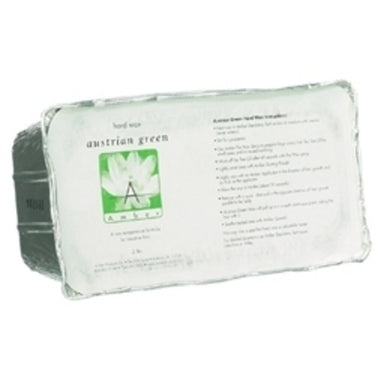 Amber Professional Austrian Green Hard Wax / 2 Lbs. Amber Professional Austrian Green Hard Wax is for normal to resistant hair. Apply 1/16" thick without a strip and peel off like a band-aid strip. Derived from beeswax, natural resins and azulene. Block, 2 lbs.
