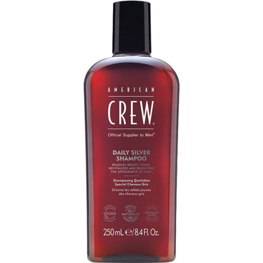 American Crew Daily Silver Shampoo / 8.4 fl. oz. - 250 mL. Daily Silver Shampoo revitalizes and brightens the look of gray hair. The new and improved formula removes brassy tones while lightly moisturizing and conditioning hair, without weigh-down. Improved formula with reduced pigment load allows for daily use without tinting hair. 8.4 oz