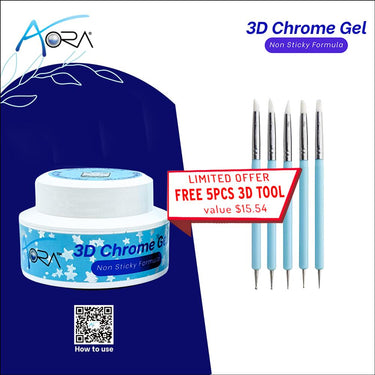 For a limited time, receive a complimentary 5-piece 3D nail tool set (valued at $15.54) with your purchase. This professional-grade set includes precision brushes and dotting tools, perfect for sculpting, detailing, and enhancing chrome nail art.