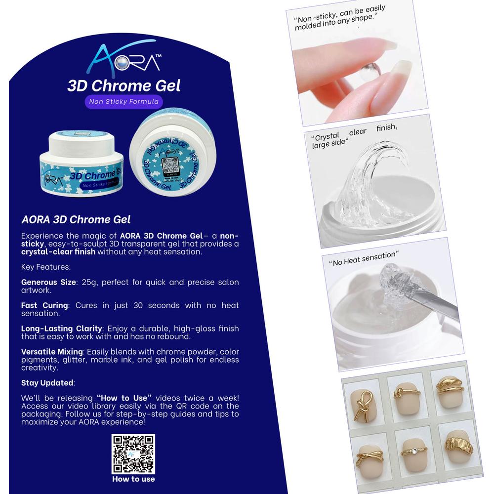 3D Chrome Gel Non-Sticky, Long-Lasting Shine. Take your nail artistry to the next level with the revolutionary 3D Chrome Gel. Designed for professional salons and spas, this innovative gel delivers a mirror-like chrome finish with a flawless, non-sticky formula. Whether youre creating dimensional designs, metallic effects, or a sleek, futuristic manicure, this gel provides the ultimate control and longevity.