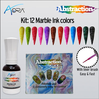 Effortless Marble Nail Art with Abstraction Marble Ink. Give your nail designs a bold, artistic edge with Abstraction Marble Ink, the professional-grade solution for creating stunning marbled effects with ease. Designed specifically for nail technicians, this innovative ink flows seamlessly, allowing you to achieve intricate patterns and breathtaking designs without the hassle of traditional marbling techniques. With 12 vibrant, high-pigment shades, you can mix, blend, and customize to create signature looks that keep clients coming back for more.