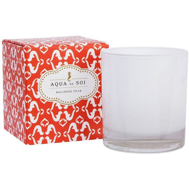 Aqua De Soi 11 oz. Tin Candle - Balinese Teak. SOi Essential Aqua De SOi Candles - 11 oz. Fill your home with the luxurious blends of Aqua De SOi Candles! Each candle is hand poured, using only the finest ingredients and fragrance oils available. Aqua De SOi Candles are made with 100% premium soy oil and are not blended with other waxes like many other candles on the market. Inspired by the passion for fragrance, love of exotic travel and strive for clean living. Aqua de SOis beautiful packaging and exotic fragrances will create a luxurious environment for everyday living wherever you choose.