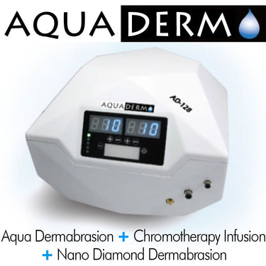 AquaDerm 4-in-1 Rejuvenation System - Aqua Hydrodermabrasion + Chromotherapy Infusion + Nano Diamond Dermabrasion + Serum Infusion . AquaDerm 4-in-1 Rejuvenation SystemThe Aquaderm Hydrodermabrasion offers a non-invasive skin resurfacing treatment which exfoliates, reduce congestion and improve textures. The Aquaderm system hydrates, exfoliates and repairs through the combination of technologies: aqua-dermabrasion, chromotherapy infusion, variable scale nano-diamond tips and serum infusion. This impressive machine features state of the art technology in hydrodermabrasion and a sleek design. Additionally it is clinically effective for both face and body treatments. A great alternative to deep cleansing, dead skin cell removal, hydration, and infusion skin repairing. Aquaderm is popular in countries across the globe.