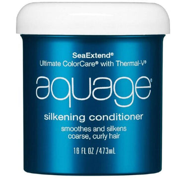 Aquage SeaExtend Silkening Conditioner / 16 oz. Aquage SeaExtend Silkening Conditioner is a luxurious, rich formula that helps improve the manageability and smoothness of hair, leaving it frizz-free and ready for sleek styling. Infused with Red Sea kelp and Algasilk sea botanicals, this conditioner deeply moisturizes, replenishing lost moisture and restoring hair's natural flexibility, strength, and resiliency. Thermal-V technology creates a heat-activated shield during thermal styling, preserving hair color and protecting from damage. With UVA/UVB sunscreens, this conditioner also helps maintain color vibrancy and prevent fading. 100% cruelty-free and free of gluten, parabens, sodium chloride, and sulfates, Aquage SeaExtend Silkening Conditioner is perfect for salons and spas, and is also great for retail. With a commitment to sustainability, Aquage is 100% plastic neutral, collecting 28% more plastic than they use and preventing 2.5 million plastic bottles from entering the ocean each year.