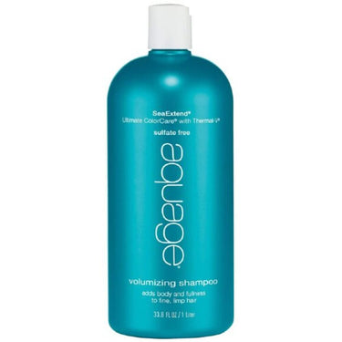 Aquage SeaExtend Volumizing Shampoo / 33.8 oz. Aquage SeaExtend Volumizing Shampoo is a must-have for salons and spas. The 33.8 oz bottle is designed to enhance natural volume, body, and strand vitality of fine, thin, or lifeless hair. It features an intensive blend of sea botanicals, known as SeaExtend, that helps to seal the cuticle and lock in color molecules for long-lasting color results. The shampoo also features SeaExtend Thermal-V Technology, a sea-derived enzymatic complex that protects hair from heat damage. AlgaePlex sea botanicals and Algasilk work together to restore color-treated hair to its optimum health with exceptional shine and feel. With UVA/UVB sunscreens, this volumizing shampoo helps to prevent fading and environmental damage. It is cruelty-free and free of gluten, parabens, sodium chloride, and sulfates, making it a safe and effective choice for your clients. Plus, Aquage is 100% plastic neutral, collecting 28% more plastic than they use and preventing 2.5 million plastic bottles from entering the ocean each year.